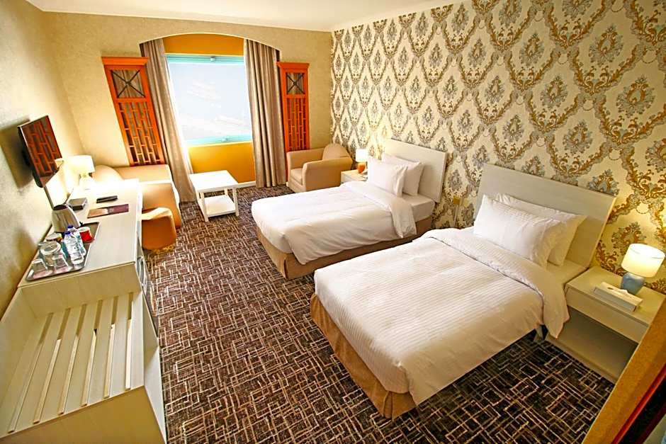 Indulge in the Premier Room with breathtaking Creek & Heritage views, offering a spacious 431 sqft haven for 2 adults and 1 child. Enjoy the luxury of a king size bed and twin beds, along with a private bathroom, bathtub, flat-screen TV, and stunning city, river, and ocean views.